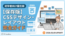 Web制作 (HTML/CSS)【保存版】HTML基本構造・タグ完全ガイド|初学者が知るべき基礎知識を凝縮 HTMLの基本を初心者向けにわかりやすく解説!タグの意味や使い方、基本構造のテンプレートまで、これ一冊で「Webの仕組み」が理解できる備忘録です。コードの書き方に迷ったとき、いつでも見返せる保存版としてご活用ください。TN Sandboxの制作備忘録第1弾。 2026.03.02Web制作 (HTML/CSS)